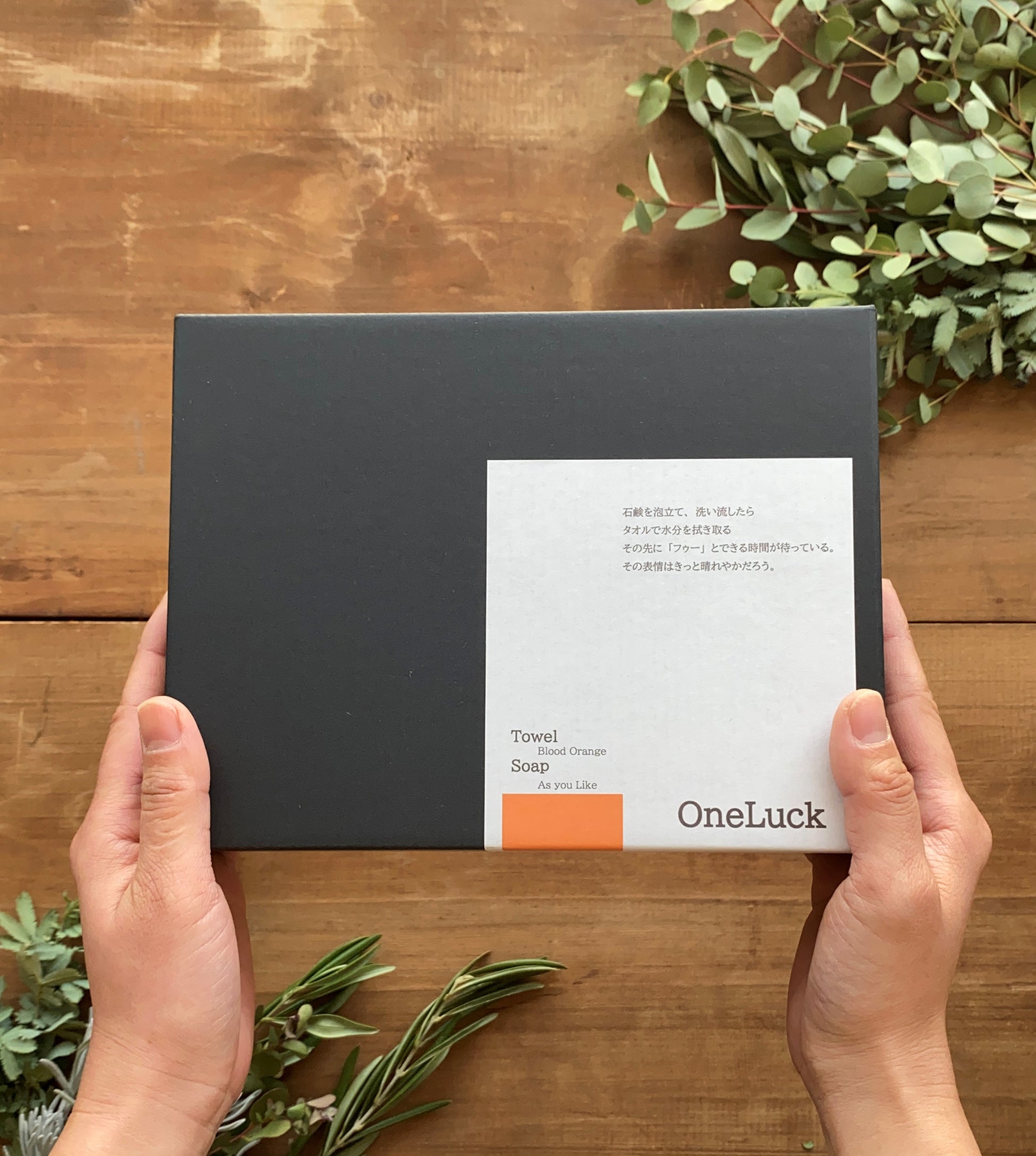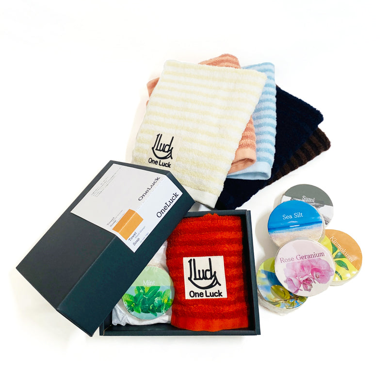 石鹸とゲストタオルのギフトセット。石鹸もゲストタオル
